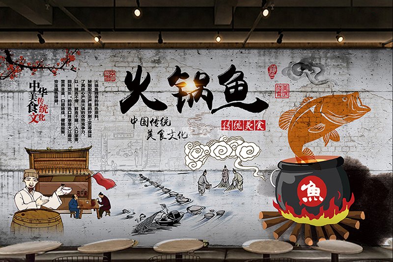 高清火鍋店墻畫創意墻繪 藝術彩繪壁畫圖案大盤點